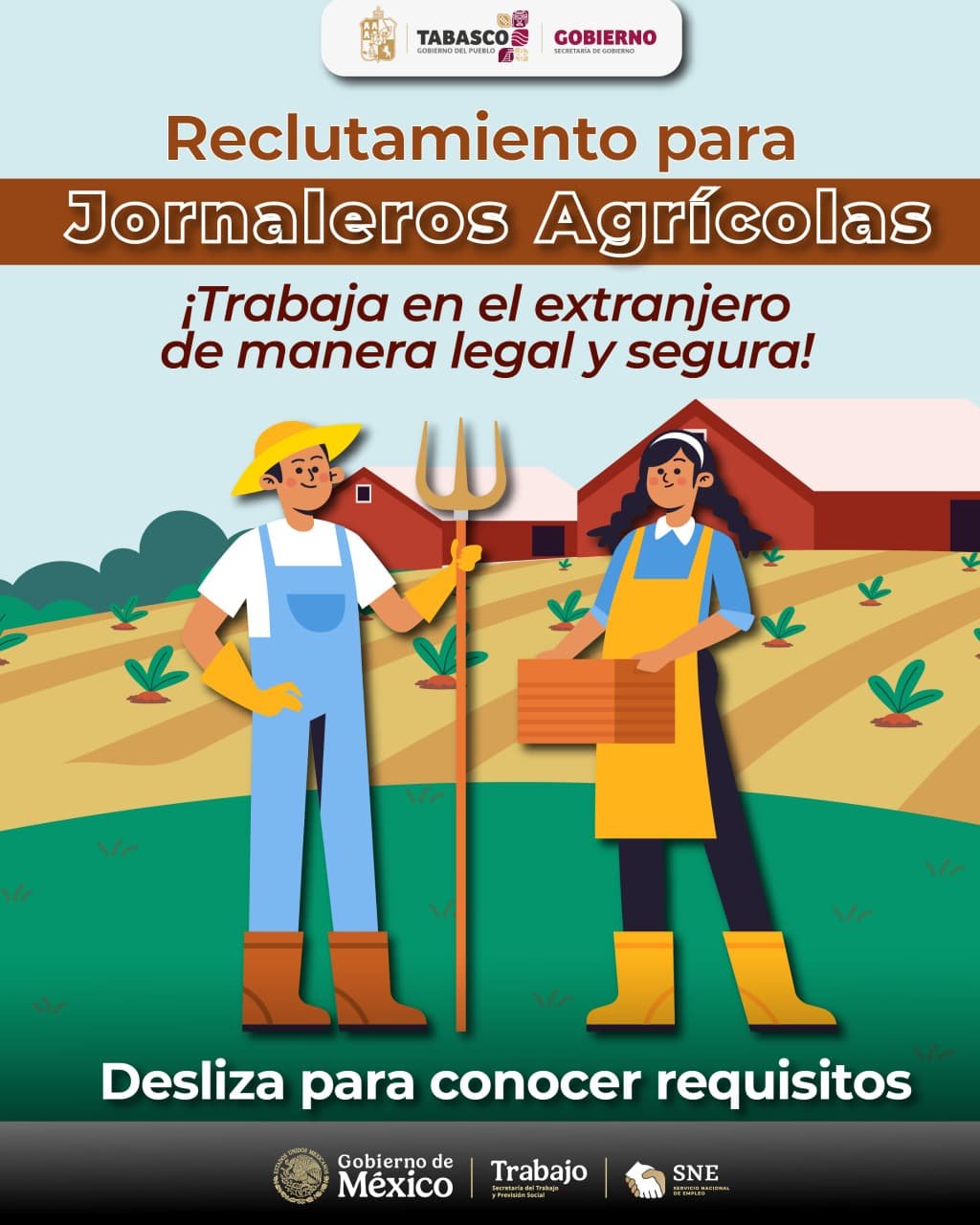 El Servicio Estatal de Empleo (SEE) abrió el proceso de reclutamiento para 80 jornaleros agrícolas que laborarán en el extranjero en actividades de cosecha de tomate, bajo un esquema de trabajo legal, seguro y conforme a la normatividad laboral vigente. Esta acción forma parte de los programas de movilidad laboral internacional impulsados para generar oportunidades de empleo formal para trabajadores del sector agrícola.
