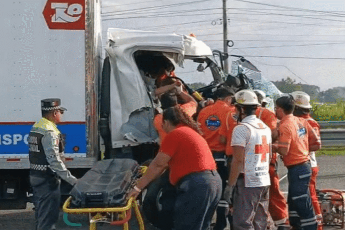 Paramédicos y cuerpos de rescate del Servicio Estatal de Urgencias y la Cruz Roja acudieron al lugar y emplearon un equipo hidráulico conocido como “quijadas de la vida” para liberar al hombre, quien fue trasladado a un hospital en Villahermosa. El conductor del camión resultó ileso.