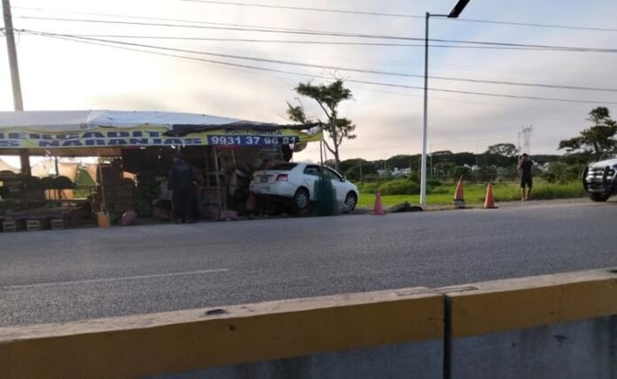 Un automovilista perdió el control de su automóvil tipo sedán la mañana de este jueves y se impactó contra un puesto de frutas a la orilla de la carretera Villahermosa-Nacajuca, a la altura del Fraccionamiento Pomoca, cerca de una sucursal de Bodega Aurrerá. Videos difundidos en redes muestran cómo la unidad quedó en sentido contrario al de la circulación, mientras el puesto de frutas sufrió daños significativos. Afortunadamente, el incidente no dejó personas lesionadas, aunque sí generó daños materiales. Autoridades locales aún no han reportado medidas adicionales, mientras el hecho sirve de alerta sobre precaución al conducir en la zona.