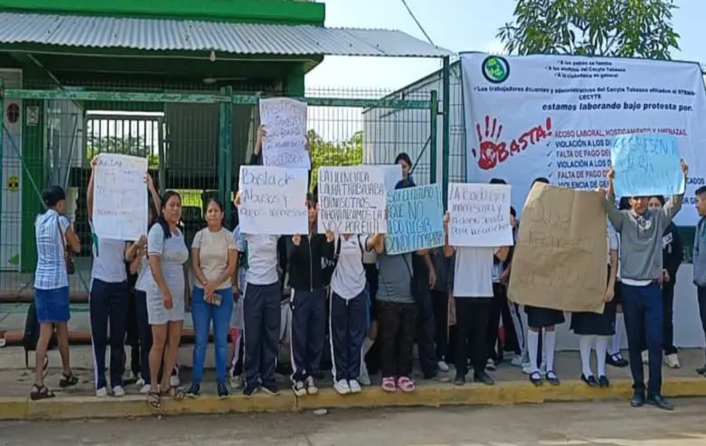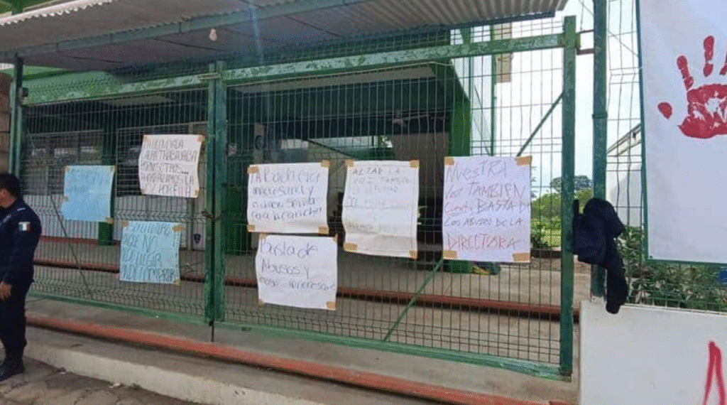 El CECyTE 19 de Villa El Cielo vivió una jornada de tensión luego de que alumnos protestaran contra la nueva directora, Zaima Pérez. Los jóvenes cerraron el portón del plantel con candado, realizaron pintas y exigieron el regreso de una trabajadora del área de control escolar, Laura Coleasa, quien fue reubicada. Además, reclamaron los altos precios de la cafetería y las deficiencias en la infraestructura escolar.