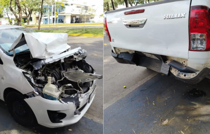 Por su parte, la camioneta presentó daños visibles en la parte trasera y en su área de carga. A pesar de lo aparatoso del choque, no se reportaron personas lesionadas, lo que evitó consecuencias mayores.
