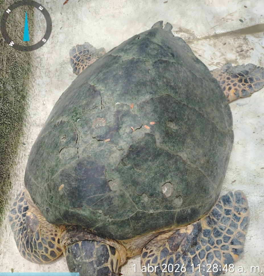 De acuerdo con la Secretaría de Medio Ambiente y Recursos Naturales, el ejemplar fue encontrado en buen estado de salud y actualmente es vigilado por la Procuraduría Federal de Protección al Ambiente. Por sus características, podría tratarse de la especie Chelonia mydas, conocida como tortuga verde, que no suele anidar en esta parte del país.