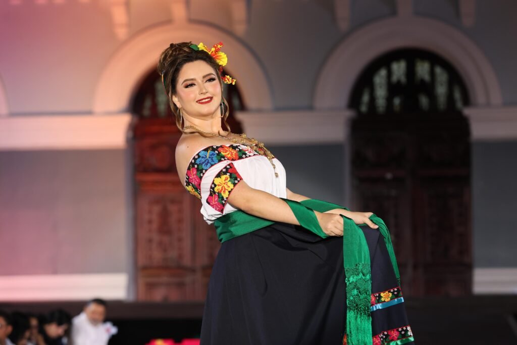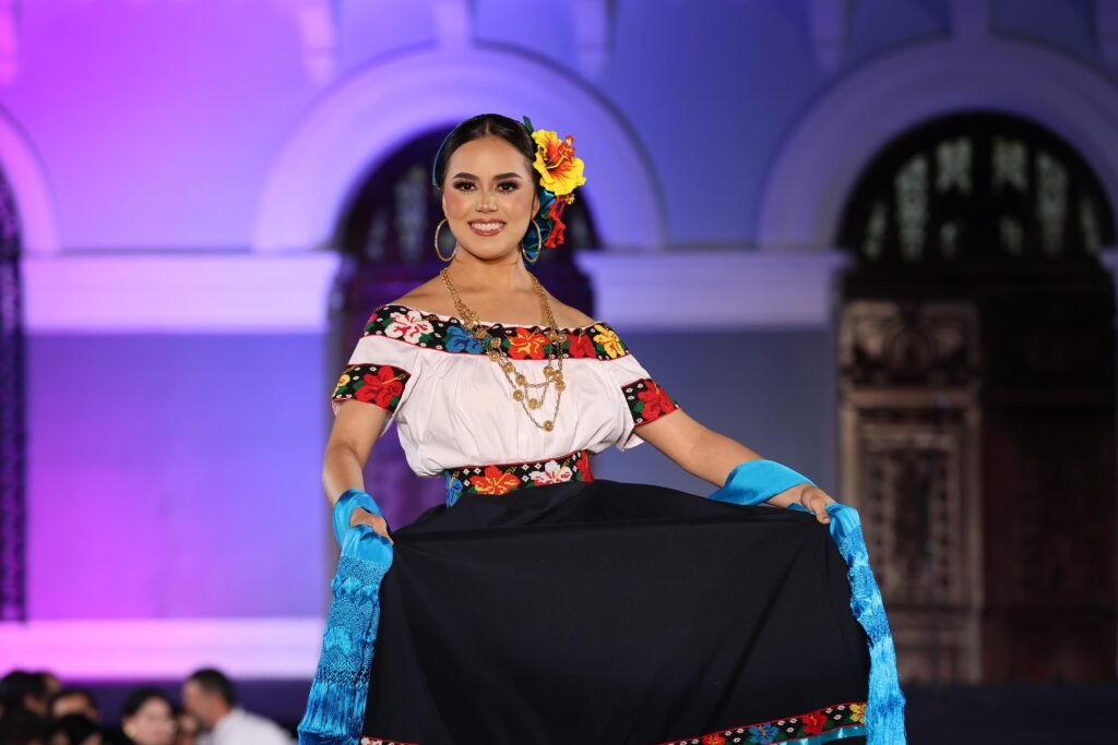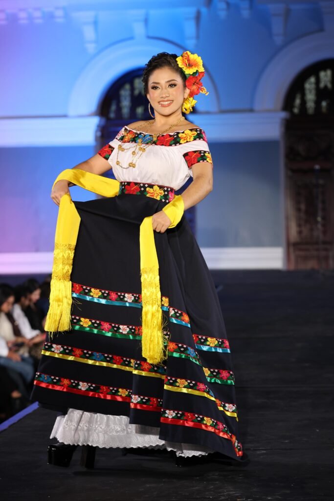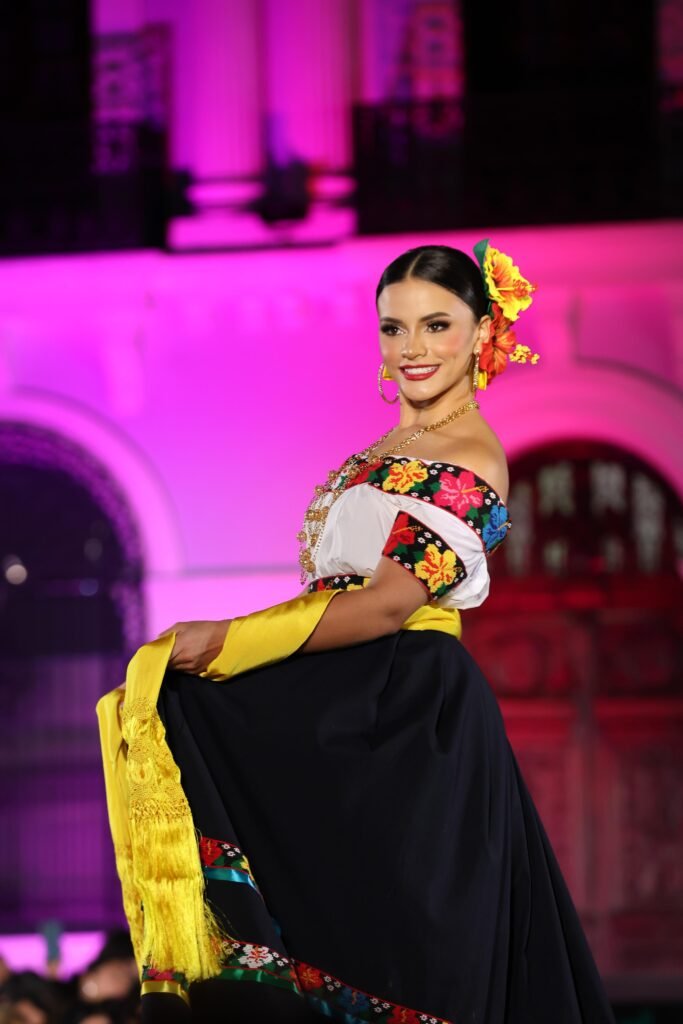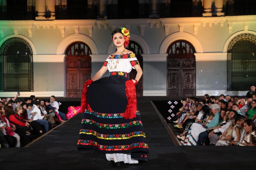 El acto incluyó un espectáculo de video mapping en la fachada del Palacio de Gobierno, presentaciones musicales a cargo de la Banda Sinfónica del Gobierno del Estado y una pasarela donde las participantes lucieron con orgullo el traje típico tabasqueño.