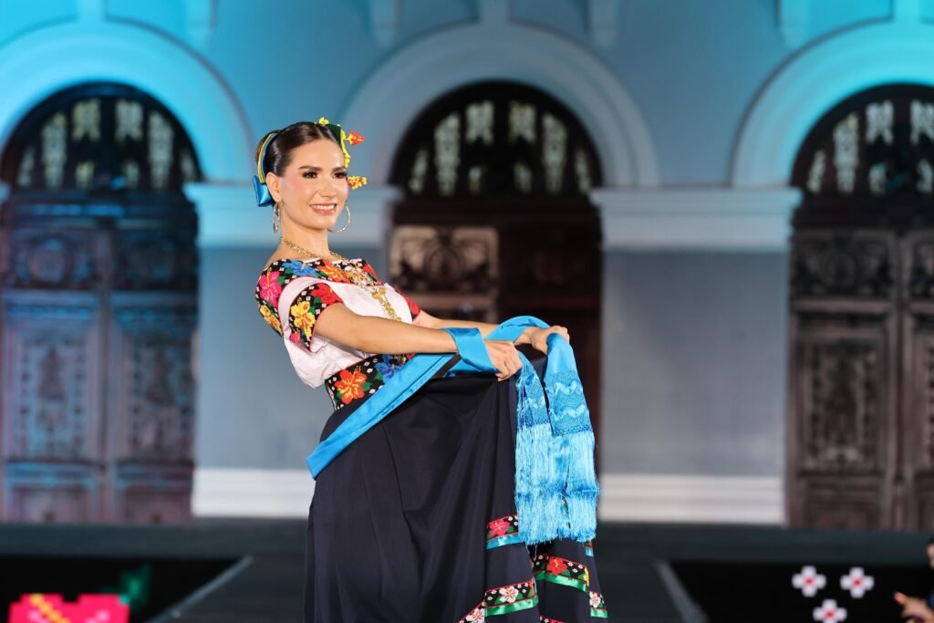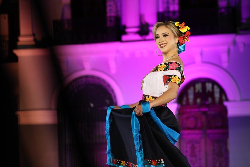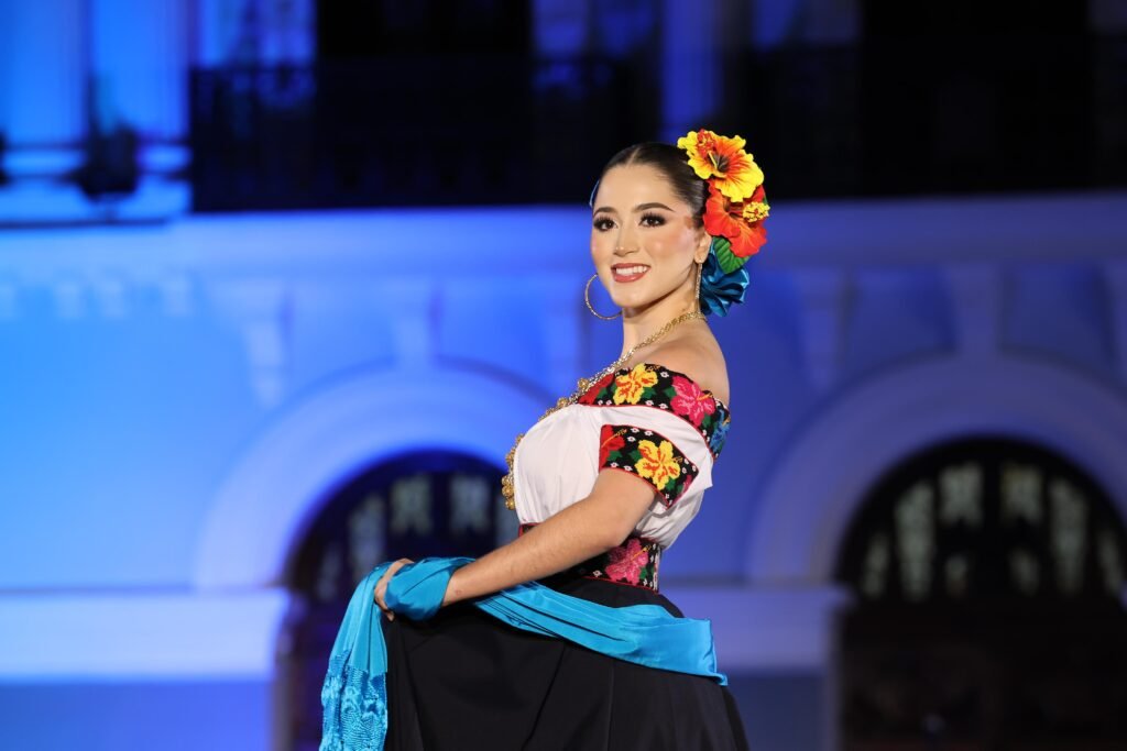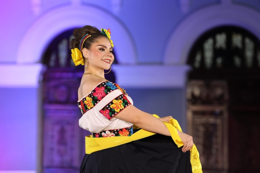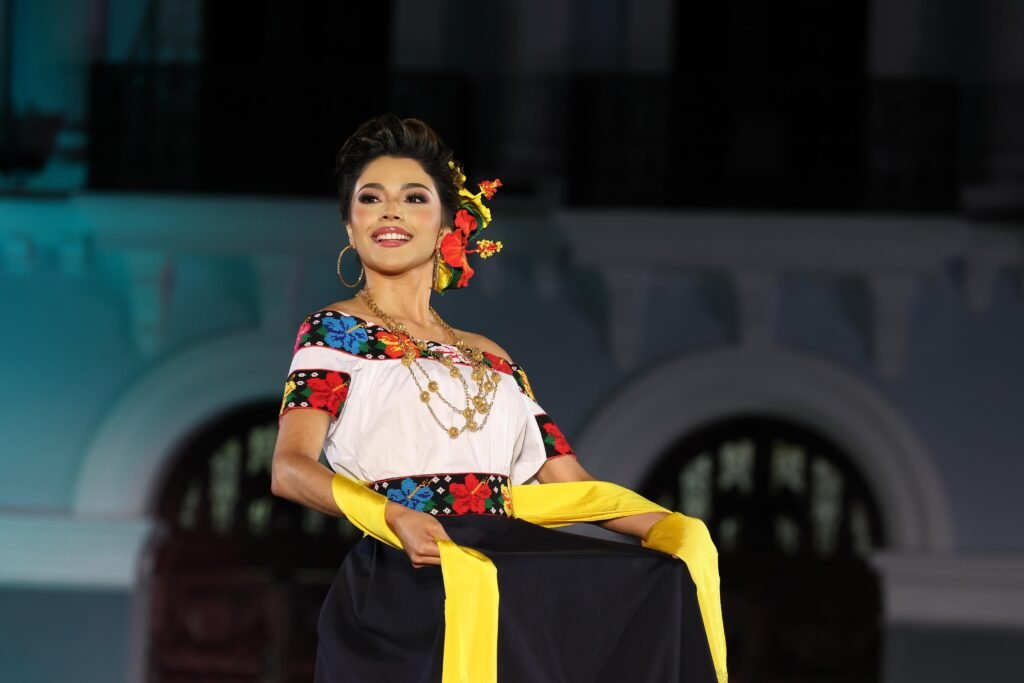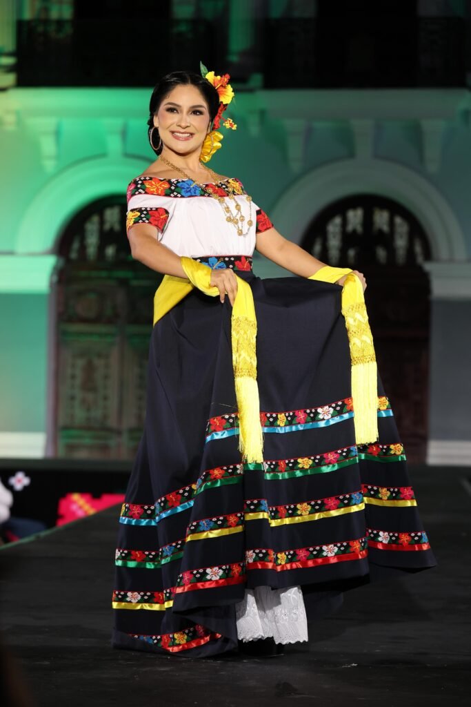 El acto incluyó un espectáculo de video mapping en la fachada del Palacio de Gobierno, presentaciones musicales a cargo de la Banda Sinfónica del Gobierno del Estado y una pasarela donde las participantes lucieron con orgullo el traje típico tabasqueño.