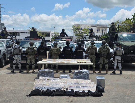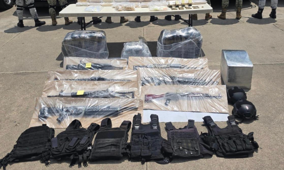 En el lugar también fueron decomisadas armas de fuego de alto poder, incluyendo un AK-47, fusiles, escopetas y cartuchos útiles. Además, se aseguró equipo táctico como chalecos, casco y placas balísticas.