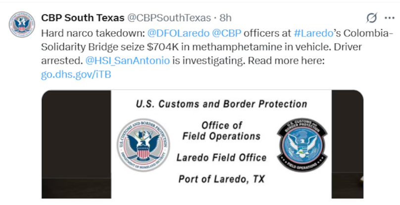 Un joven mexicano de 27 años fue detenido en Estados Unidos cuando intentaba cruzar un cargamento de metanfetamina valuado en más de 14 millones de pesos. La detención se registró el 19 de agosto en el Puente Colombia-Solidaridad, que conecta Laredo, Nuevo León, con Laredo, Texas. Durante una inspección secundaria, agentes de la Oficina de Aduanas y Protección Fronteriza (CBP) descubrieron 12 paquetes ocultos en una camioneta Ford Expedition 2008, con un peso total de 34.7 kilos de droga. El hallazgo fue posible gracias al apoyo de un agente canino. Según las autoridades, la droga alcanzaba un valor de más de 704 mil dólares en el mercado estadounidense. El conductor y la unidad quedaron asegurados, mientras se abrió una carpeta de investigación. Este caso se suma a recientes decomisos de metanfetamina en México y EEUU, reflejando la constante presión contra el trasiego de drogas en la frontera.