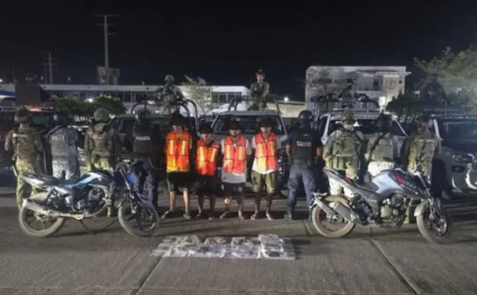 En un despliegue coordinado, elementos de la Secretaría de Seguridad y Protección Ciudadana y de la Policía Municipal de Comalcalco detuvieron a cuatro hombres en la calle Guadalupe Lázaro, en Villa Chichicapa, señalados como presuntos responsables de delitos contra la salud. Los individuos, identificados como Manuel Estanislao “N”, Juan Josué “N”, Fernando Wuanerge “N” e Isidro “N”, con edades de 18 a 35 años, habrían operado en el narcomenudeo local.