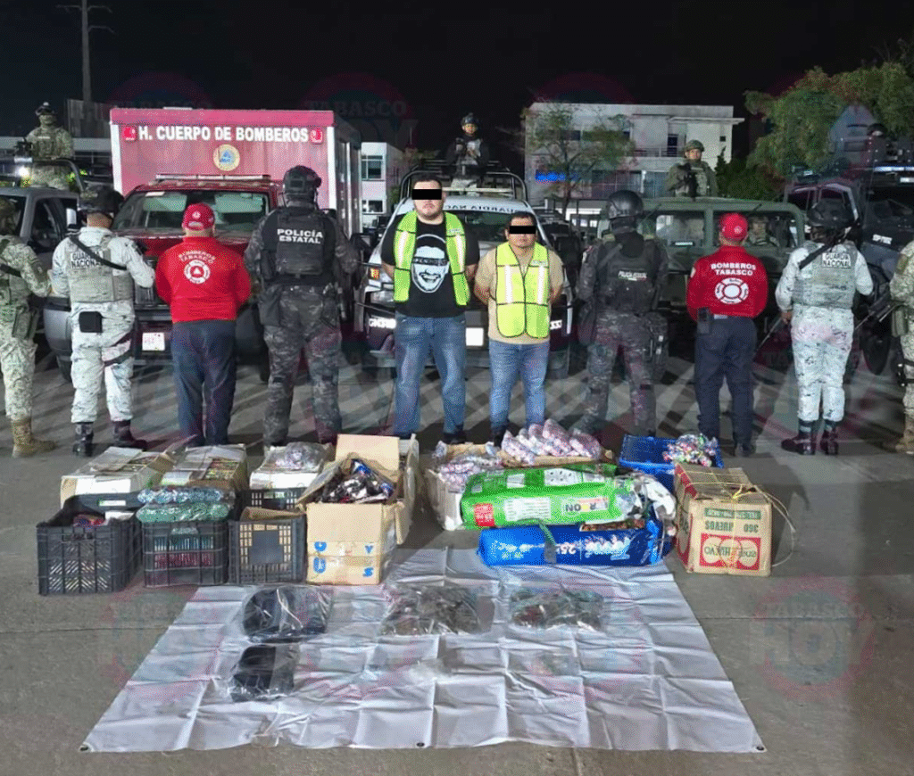 Elementos de la Fuerza Interinstitucional de Reacción Táctica Olmeca, en coordinación con corporaciones estatales y federales, localizaron una bodega clandestina en el Mercado Provisional de Casa Blanca, en el municipio de Centro. El aseguramiento se realizó sobre la calle Río Grijalva, donde fueron detenidos dos hombres identificados como Jorge Alberto “N”, alias “El Pila”, y Brian de Jesús “N”, alias “El Chelo”.