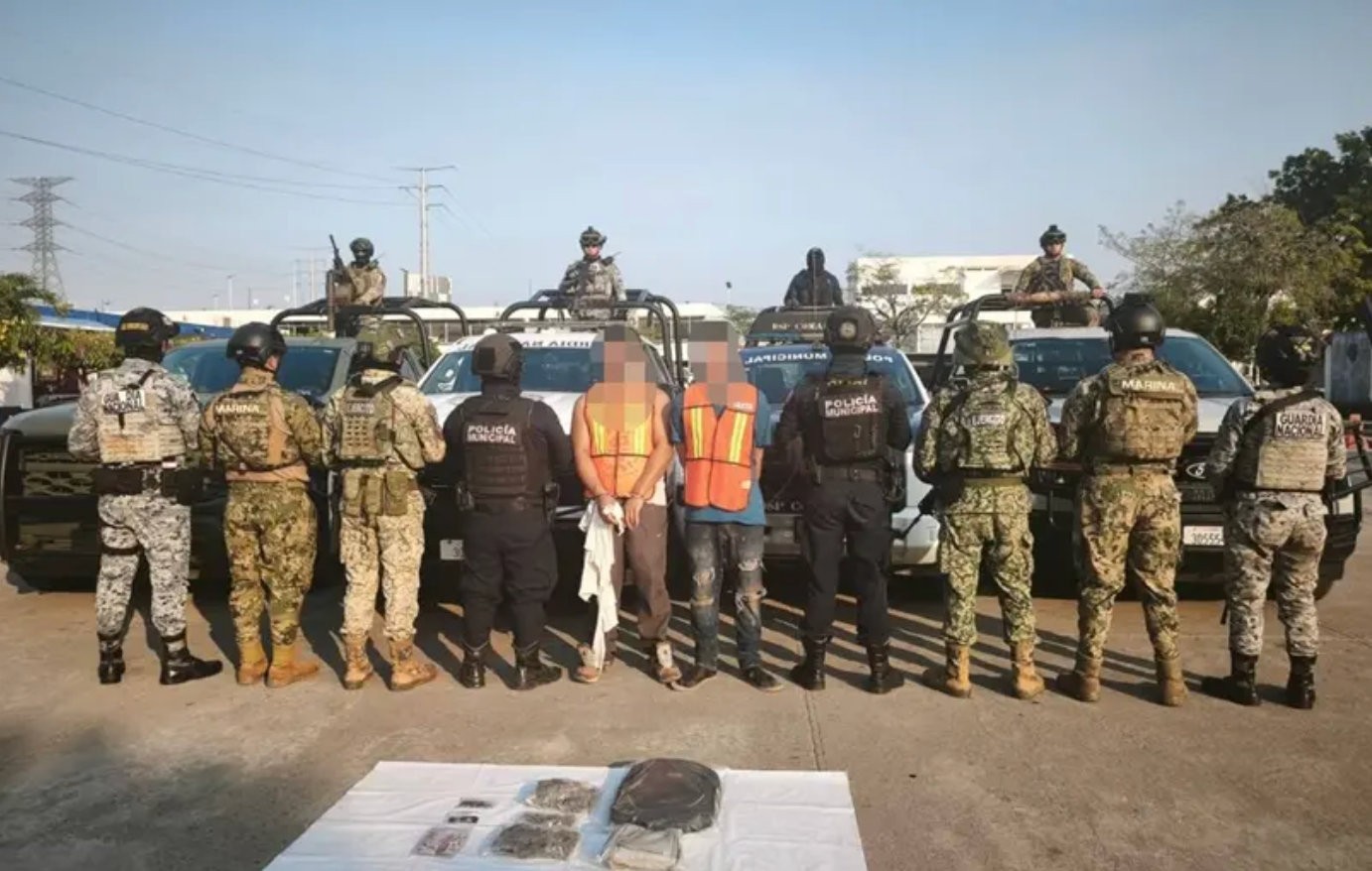 De acuerdo con el reporte oficial, elementos federales, estatales y municipales les aseguraron 40 dosis de una sustancia similar a la marihuana y 20 dosis con características del cristal, por lo que se presume su posible relación con el narcomenudeo.