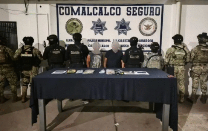 Un operativo coordinado en Comalcalco dejó como saldo la detención de dos sujetos en posesión de droga y un arma de fuego, tras intentar evadir a las autoridades entre pastizales en la ranchería Arena segunda sección.