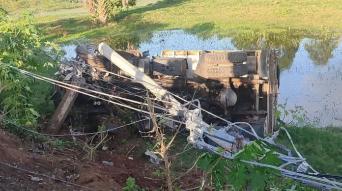 Un accidente vial se registró la tarde del martes en la carretera Villahermosa–Frontera, a la altura de la localidad de Macultepec, cuando un camión pesado tipo volteo se salió del camino, volcó y derribó un poste de energía eléctrica. El percance generó daños a la infraestructura eléctrica y provocó una interrupción momentánea en la circulación vehicular.
