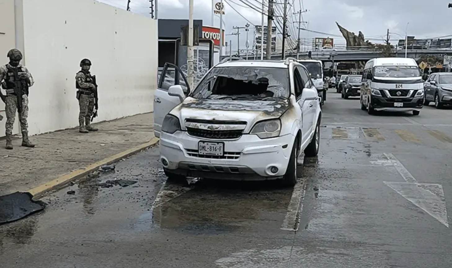 Elementos de la Policía Estatal de Caminos, con apoyo de personal del Ejército, se encargaron de resguardar el área y controlar la circulación vehicular, ya que el incidente provocó congestionamiento vial.