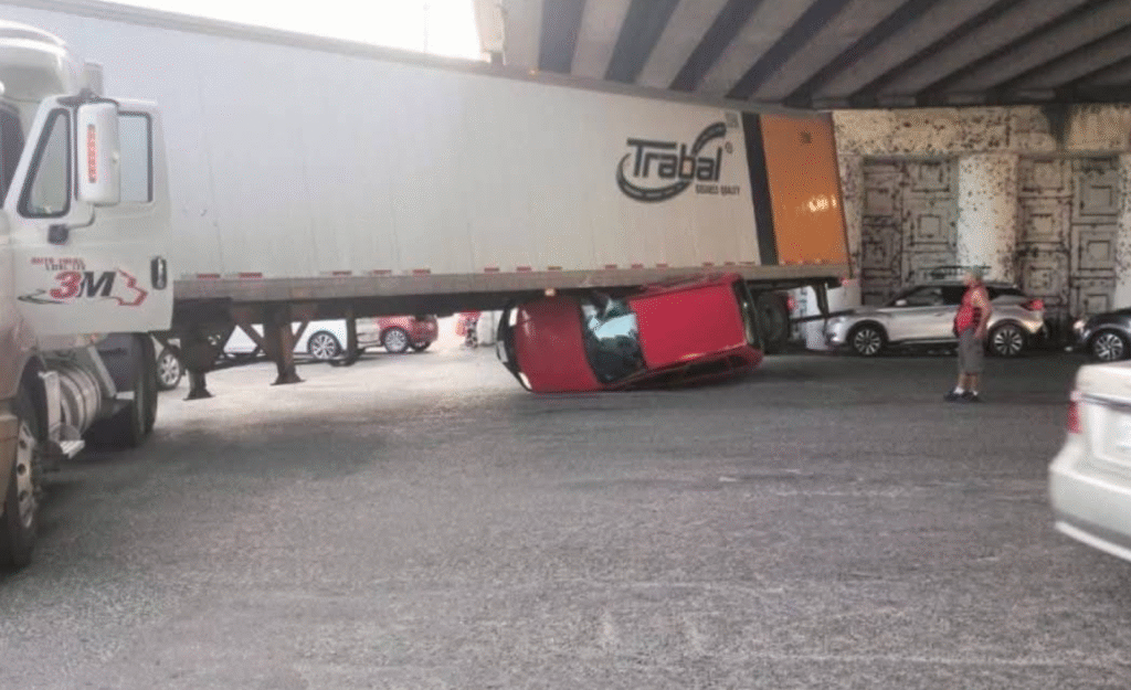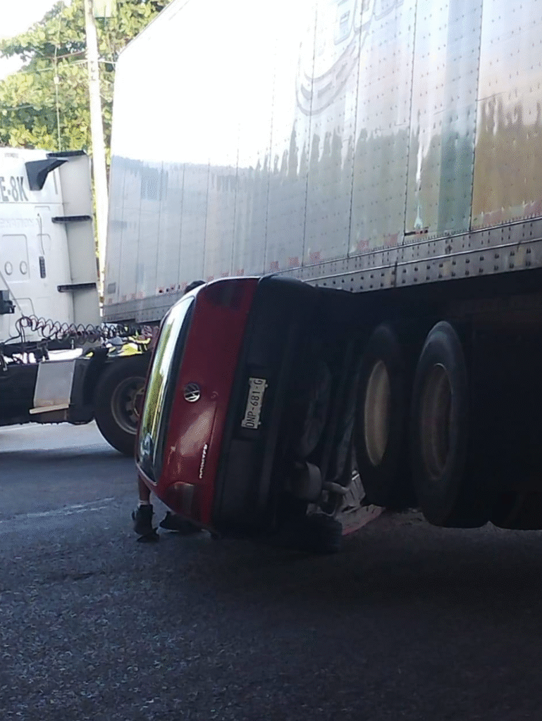 Un aparatoso accidente ocurrió la mañana de este miércoles bajo el puente de La Isla, en la carretera Villahermosa–Cárdenas, cuando un tráiler que realizaba una maniobra para incorporarse al retorno terminó encima de un automóvil compacto. Según los primeros reportes, el auto avanzó sin respetar la distancia adecuada, provocando que quedara prácticamente aplastado en la parte frontal. Aunque la escena generó alarma entre los automovilistas, el conductor resultó ileso.