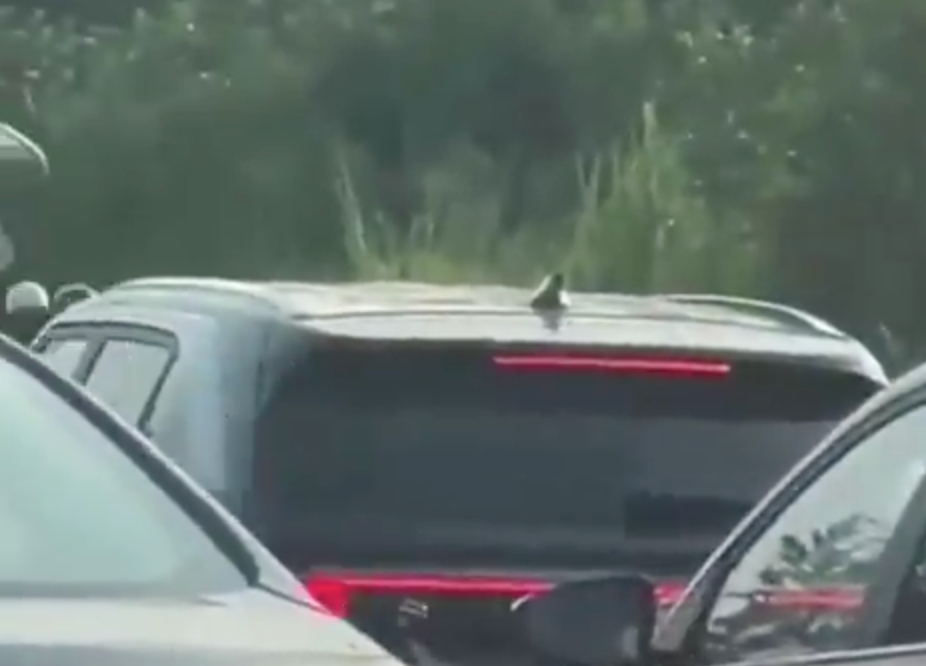 Un presunto asalto fue captado en video sobre el puente a Indeco, en Villahermosa, donde dos sujetos armados a bordo de una motocicleta habrían interceptado a un automovilista.