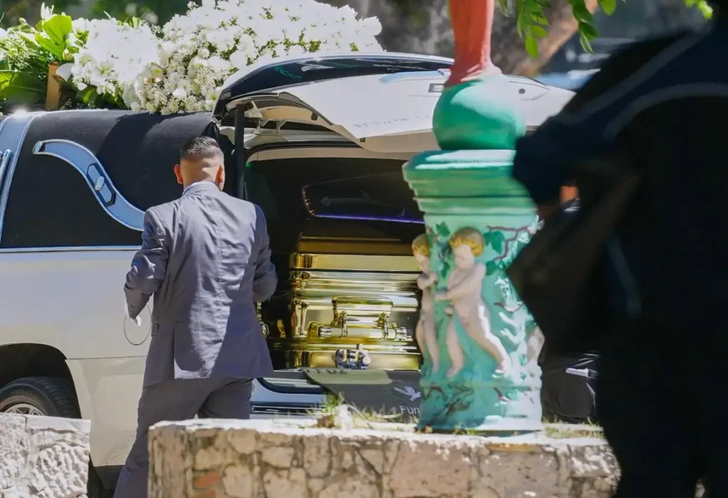 Dos carrozas fúnebres partieron hacia el cementerio Recinto de la Paz, una de ellas con un féretro metálico dorado, acompañado de arreglos florales, entre ellos una corona con la figura de un gallo. El traslado fue escoltado durante un recorrido de 26 kilómetros, con revisiones a todos los vehículos del cortejo.