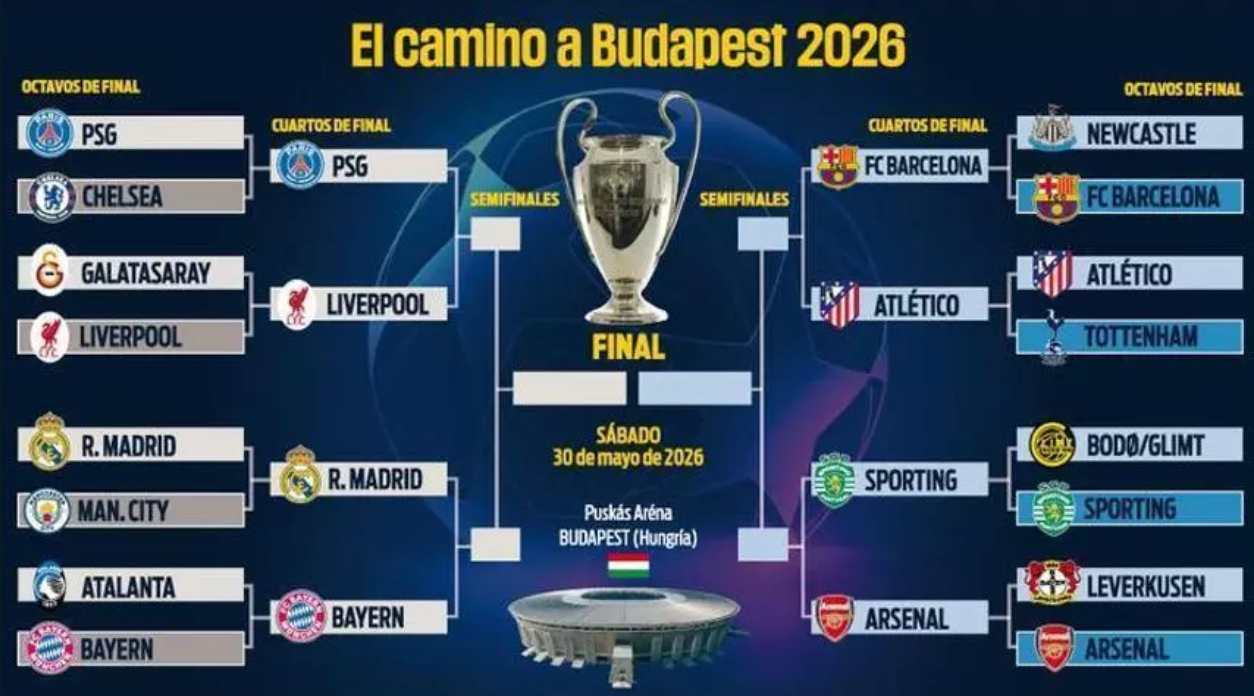 La UEFA Champions League 2026 entra en su fase decisiva con la confirmación de los cruces de cuartos de final, tras la conclusión de los octavos. Entre los enfrentamientos más destacados se encuentra el duelo entre Real Madrid y Bayern Múnich, así como el choque español entre Barcelona y Atlético de Madrid.