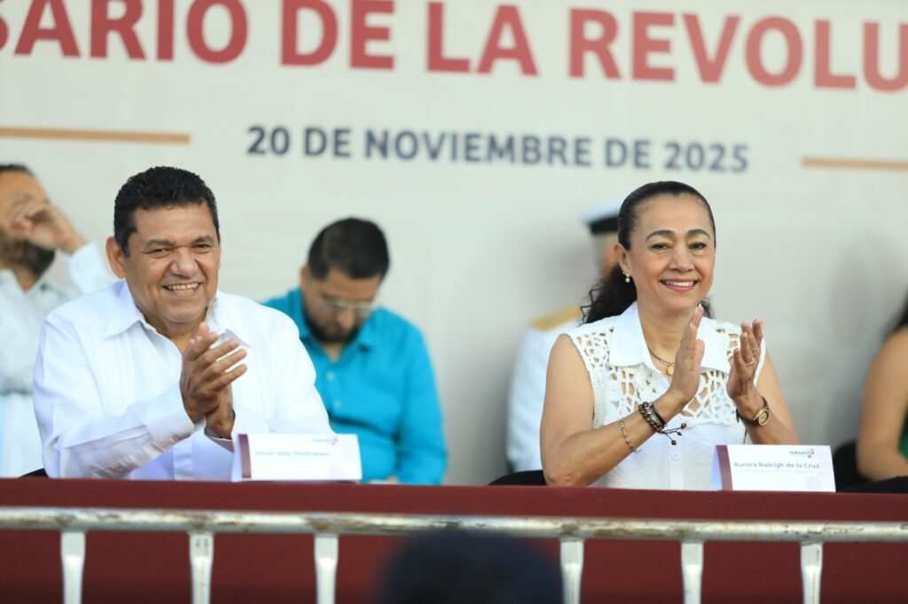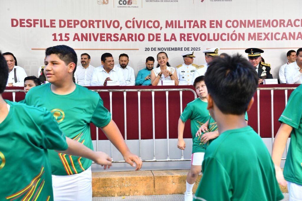 El Desfile Deportivo, Cívico y Militar por el 115 aniversario de la Revolución Mexicana llenó de alegría, orgullo y tradición el malecón Carlos A. Madrazo. El Gobernador Javier May, acompañado de autoridades civiles y militares, presenció el paso de más de 4 mil 800 participantes, entre ellos fuerzas federales y estatales, estudiantes de todos los niveles, deportistas destacados, servidores públicos y asociaciones de charros.