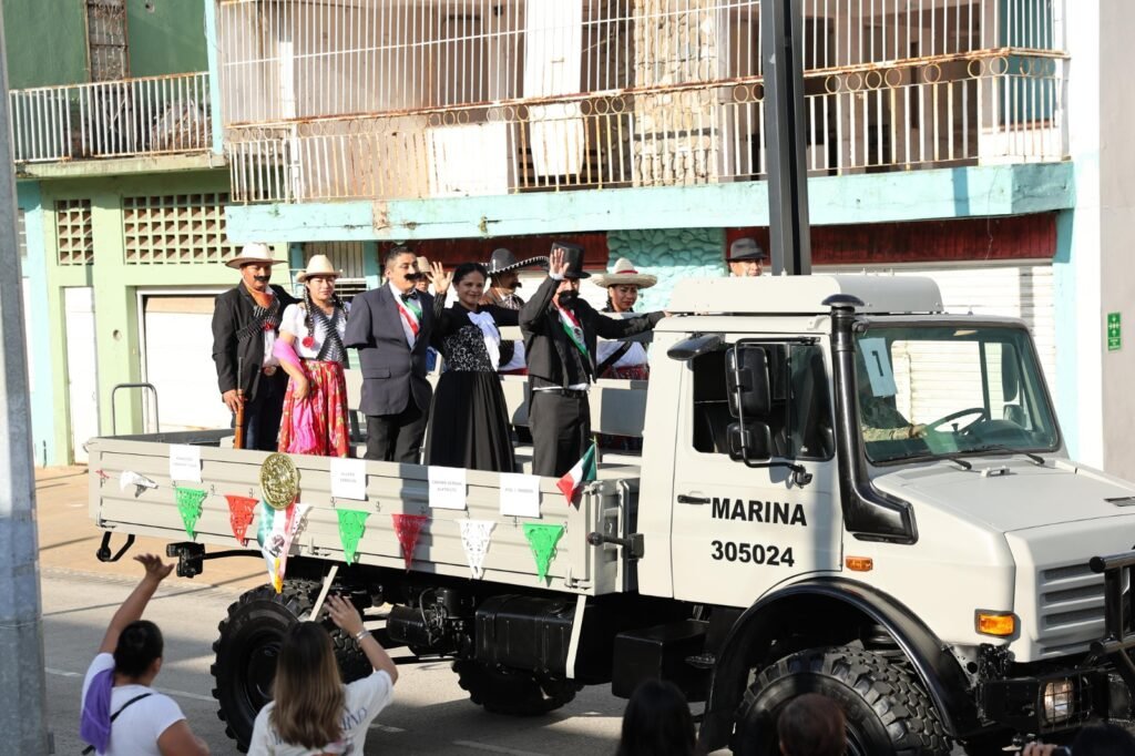El recorrido inició antes de las 8:00 horas con banderas monumentales y atletas galardonados, seguido de contingentes que ofrecieron tablas rítmicas, danzas, formaciones, demostraciones deportivas y estampas históricas. La banda de guerra y la Banda Sinfónica del Estado aportaron el ambiente patriótico. Instituciones de salud, seguridad y protección civil también participaron, mostrando su labor comunitaria. El cierre estuvo a cargo de charros, jinetes y escaramuzas, que dieron un broche de oro a un desfile que celebró identidad, historia y orgullo tabasqueño.