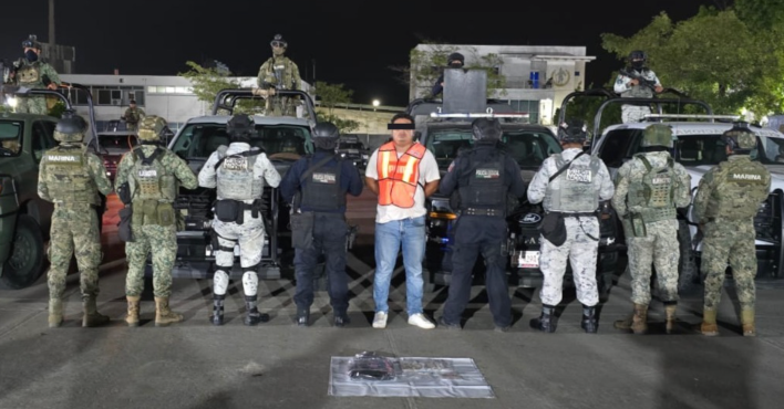 Elementos de la Secretaría de Seguridad y Protección Ciudadana de Tabasco, en coordinación con la Fuerza Interinstitucional de Reacción Táctica Olmeca, detuvieron a un hombre en la Villa Parrilla, municipio de Centro, por su presunta participación en delitos contra la salud.
