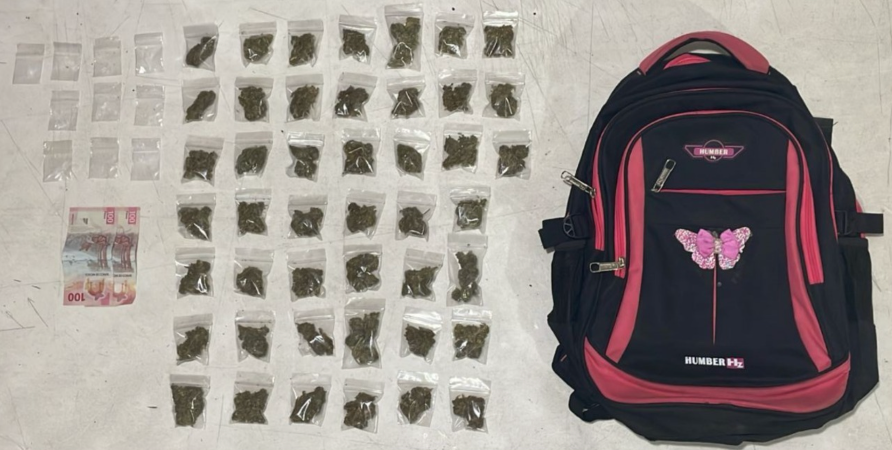 Entre lo asegurado se encontraban 45 bolsitas con hierba seca con características similares a la marihuana y 10 con una sustancia granulosa con características de la droga conocida como cristal. También se le encontró dinero en efectivo.