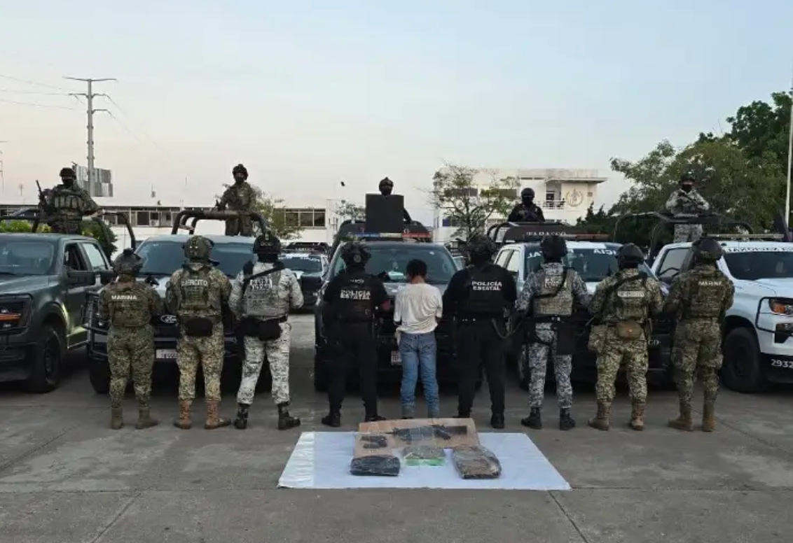 Un adolescente de 14 años fue detenido en la ranchería Tinto 1ra Sección, en el municipio de Centro, por su presunta participación en delitos contra la salud en modalidad de narcomenudeo, así como por portación de armas de fuego.