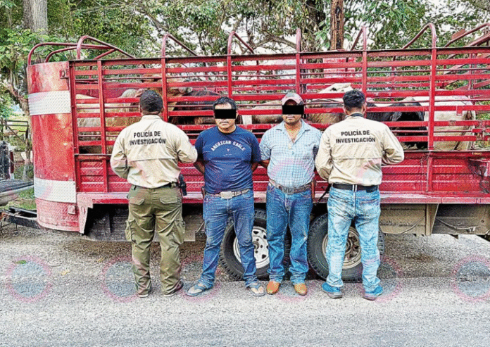 En un operativo de la Policía de Investigación de la Fiscalía General del Estado (FGE), fueron detenidos en flagrancia Víctor Manuel “N”, alias “El Kiko”, y Geremías “N”, alias “El Jere”, señalados como presuntos cuatreros. Los sujetos viajaban en una camioneta Ford Lobo color gris con placas de Guerrero, que remolcaba un tráiler rojo sin placas, dentro del cual transportaban cinco semovientes de distintas edades y marcas de fierro quemador. El aseguramiento ocurrió sobre la carretera Jalpa de Méndez-Soyataco-Mecoacán, frente a la escuela Paidea, donde testigos observaron la intervención policial. Los detenidos no pudieron acreditar la legal procedencia del ganado, por lo que fueron puestos a disposición de las autoridades por el delito de abigeato equiparado. Los animales quedaron bajo resguardo de la asociación ganadera local.