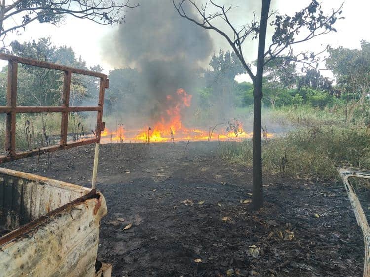 Este miércoles por la madrugada, un ducto de Pemex ubicado en un rancho del ejido Juárez, Centla, explotó presuntamente debido a un acto ilícito. El fuego consumió varios metros de pastizal, así como una camioneta y un vehículo compacto. A pesar de la magnitud del incidente, no se reportaron personas heridas ni fallecidas. Personal de Pemex trabaja en el control del siniestro, mientras la zona quedó bajo resguardo de la Guardia Nacional y la Secretaría de la Defensa Nacional (SEDENA). Las autoridades continúan supervisando el área y tomando medidas preventivas para garantizar la seguridad de la población y prevenir incidentes mayores.