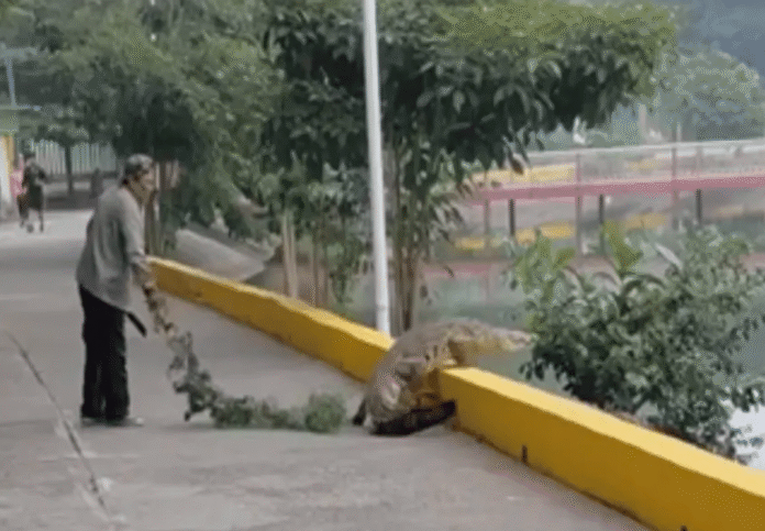Primero intentó persuadirlo hablándole y regañándolo como si fuera un animal doméstico; después, con un ligero toque de la rama, el cocodrilo decidió regresar al agua. El video rápidamente se viralizó, y usuarios de redes lo bautizaron como “el domador de cocodrilos”. Muchos destacaron que la escena parecía hecha con IA por lo surrealista del momento, pero se comprobó que fue completamente real. El episodio dejó claro que la serenidad y la valentía del sexagenario superaron cualquier efecto digital.
