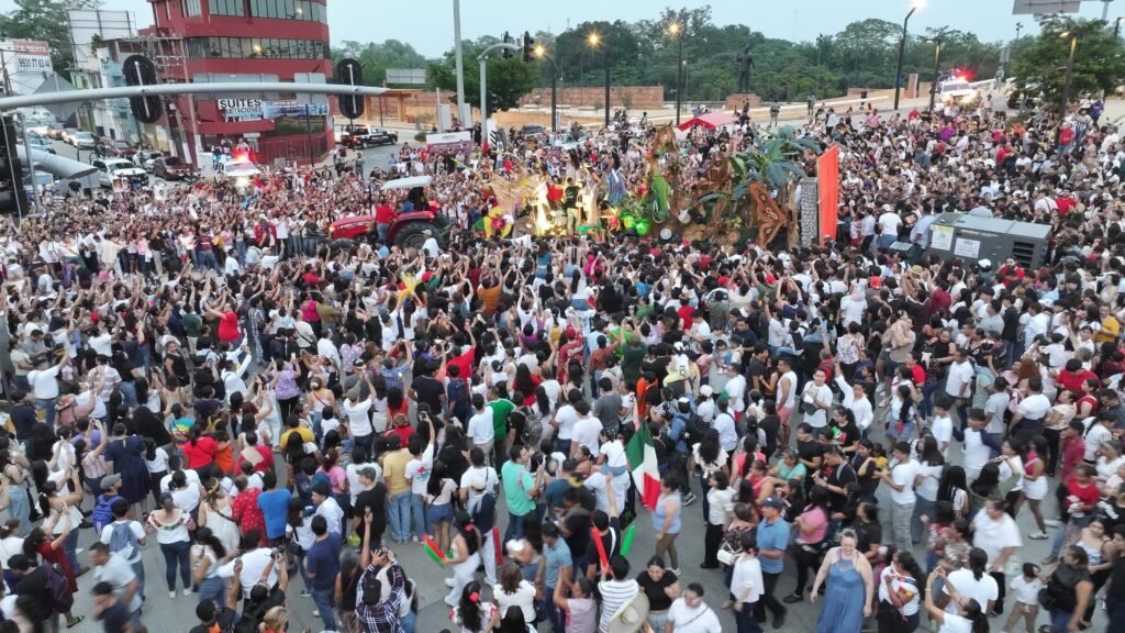 Tabasco vivió una noche histórica con la celebración popular en honor a Fátima Bosch Fernández, Miss Universe México 2025. Miles de personas abarrotaron Paseo Tabasco en una valla humana de tres kilómetros, acompañada de música, tambores y porras que gritaban su nombre. El carro alegórico, adornado con garzas de petate, guano y mariposas de semillas, se convirtió en el emblema de la fiesta. Familias, parejas y amistades se unieron para vitorear a la teapaneca, también Flor Tabasco 2018. Acompañada de misses de Veracruz, Tlaxcala, Yucatán y Tamaulipas, la reina reafirmó el orgullo y unidad del Edén mexicano.