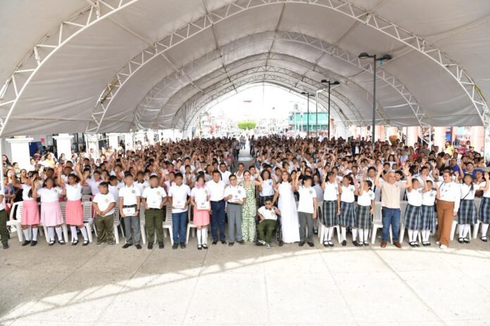 Acompañado por la secretaria de Educación de Tabasco, Patricia Iparrea Sánchez, y la alcaldesa de Huimanguillo, Mari Luz Velázquez Jiménez, el gobernador reconoció también el trabajo del personal docente, al considerar que su labor es fundamental para el desarrollo educativo de las nuevas generaciones.