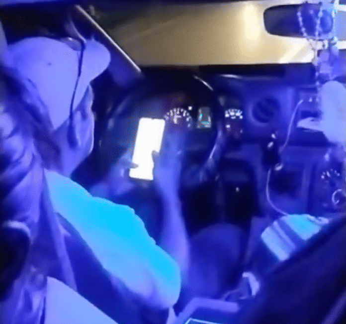Exhiben a chofer texteando mientras maneja combi.