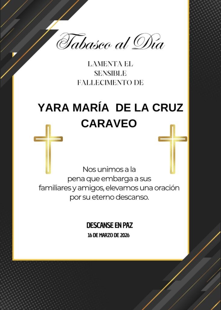 El gobernador de Tabasco, Javier May Rodríguez, dio a conocer el fallecimiento de Yara María de la Cruz Caraveo, madre de su esposa Aurora Raleigh de la Cruz, quien se desempeña como presidenta honoraria del Sistema DIF Tabasco.