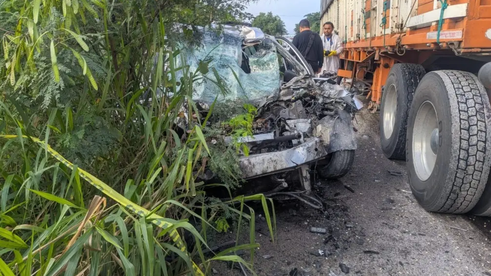 En el lugar fueron localizados los cuerpos sin vida de dos pasajeros del automóvil particular: un hombre identificado como Juan “N” y una mujer de nombre Magali “N”. El conductor del sedán fue trasladado de emergencia al Hospital General de Macuspana, donde más tarde se confirmó su fallecimiento debido a la gravedad de las lesiones.