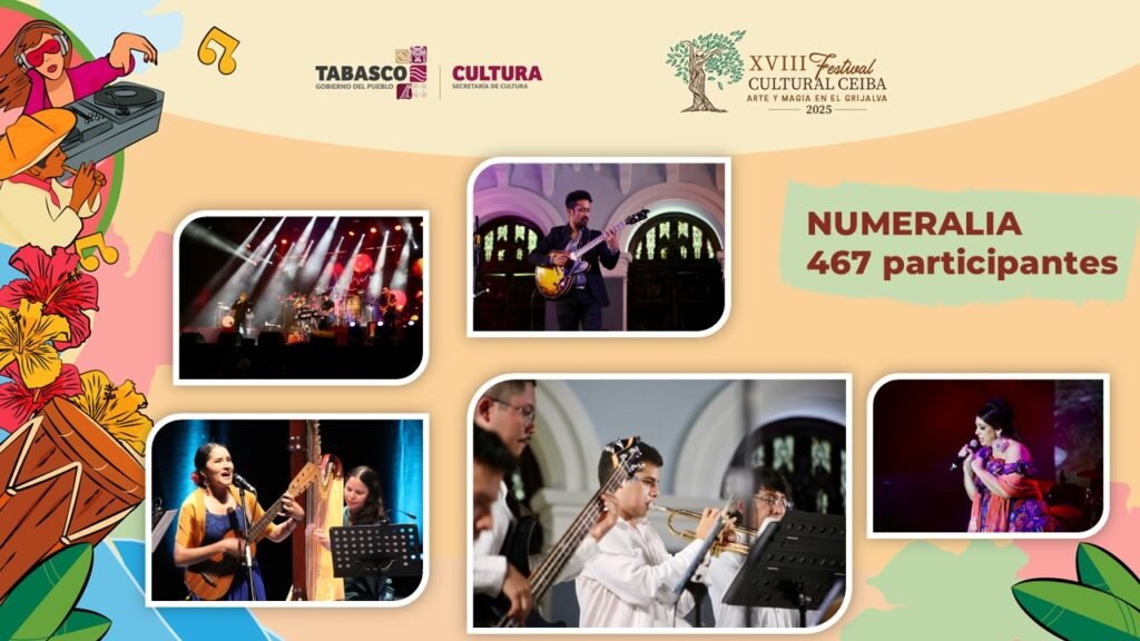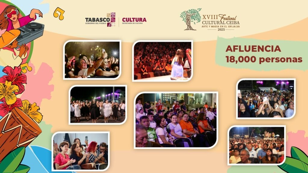 Con más de 18 mil asistentes, el Festival Cultural Ceiba 2025 convirtió a Villahermosa en el epicentro del arte y la tradición tabasqueña. La secretaria de Cultura, Aida Elba Castillo Santiago, destacó que el evento, bajo el lema “Arte y magia en el Grijalva”, se desarrolló con saldo blanco y un ambiente familiar.