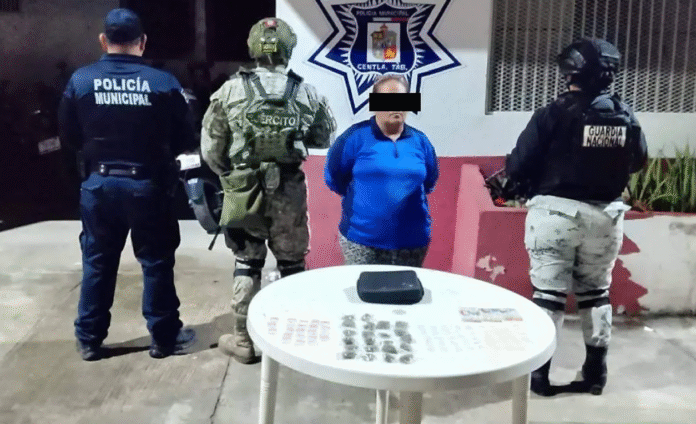 La detenida fue identificada como María del Carmen N, de 45 años de edad y originaria de Frontera. Durante la revisión, las autoridades localizaron diversas bolsitas que contenían sustancias con características similares a estupefacientes, en colores amarillo, rosado y gris, además de dinero en efectivo.