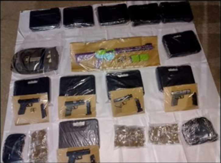 Asimismo, se decomisaron 11 cajas de plástico con la leyenda Taurus, una mochila, una mariconera y un vehículo Volkswagen modelo Taos. Los detenidos, junto con los indicios asegurados, fueron puestos a disposición de la autoridad competente para el seguimiento de la carpeta de investigación.
