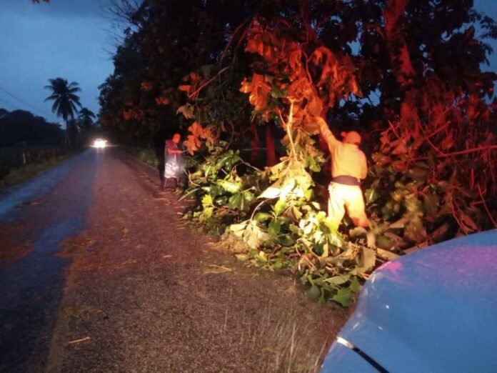 Las precipitaciones provocaron la caída de 30 árboles en siete municipios, situación que fue atendida de inmediato por @ProcivilTabasco, sin que se registraran lesionados ni daños materiales de gravedad. En Teapa, un árbol obstruyó la carretera hacia Galeana, siendo retirado para restablecer el tránsito. Autoridades mantienen monitoreo constante del río La Sierra y otras zonas vulnerables ante posibles crecidas. Se prevé que las lluvias disminuyan gradualmente, aunque continúan los recorridos preventivos para salvaguardar a la población.