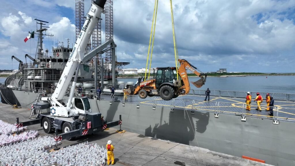El gobernador Javier May Rodríguez encabezó el segundo envío de ayuda humanitaria hacia Veracruz, destinado a apoyar a las familias afectadas por las recientes lluvias y desbordamientos. Desde el puerto de Dos Bocas zarpó el buque ARM Isla HolBox Bal 02 de la Secretaría de Marina, transportando 50 toneladas de víveres, productos de higiene, 115 tinacos domésticos y uno de 10 mil litros, además de maquinaria como seis retroexcavadoras y pipas de agua.