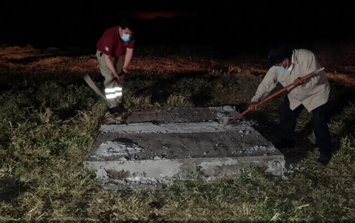 Tras el hallazgo, elementos de seguridad acordonaron la zona mientras personal de la Fiscalía General del Estado de Tabasco realizaba las diligencias correspondientes en el lugar.
