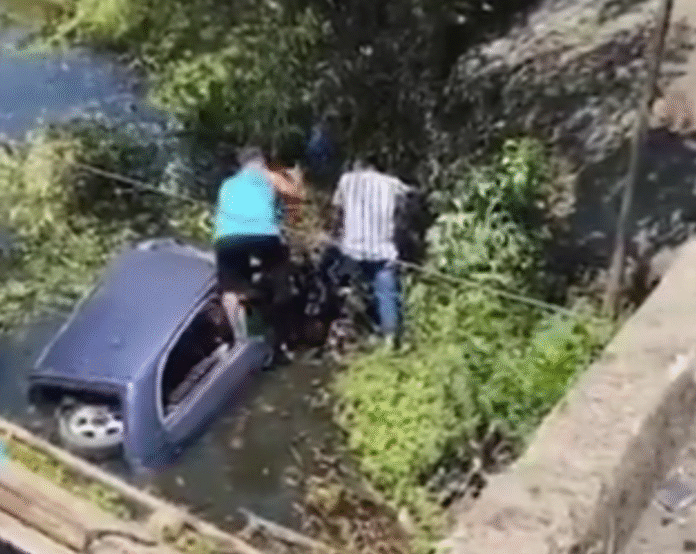 Un aparatoso accidente registrado este domingo en la carretera Villahermosa–Teapa, a la altura de Las Lilias, dejó un automóvil dentro de un dren con agua y a su conductor atrapado entre los fierros retorcidos.