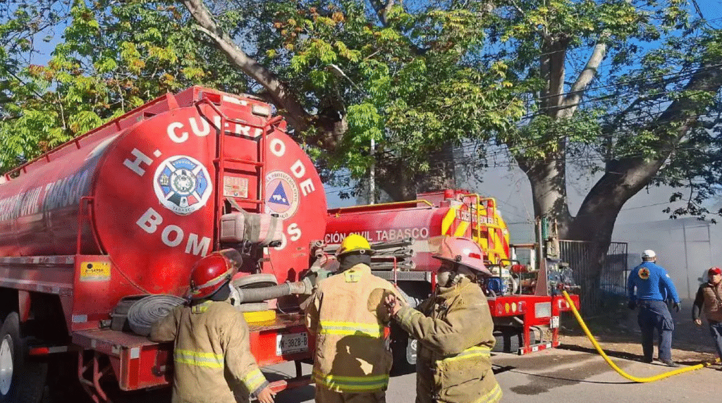 Un incendio destruyó por completo un taller de hojalatería con 17 años de operación, ubicado sobre la avenida 16 de Septiembre, frente al Colegio de Policía, en la ciudad de Villahermosa. El siniestro ocurrió la mañana de este lunes 2 de febrero de 2026 y fue reportado por vecinos a las autoridades de Protección Civil.