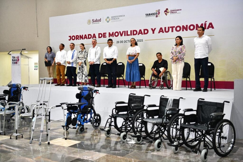 El gobernador Javier May Rodríguez encabezó la Jornada de Movilidad y Autonomía, donde entregó 492 apoyos funcionales de movilidad a personas de 15 municipios tabasqueños. En el evento, realizado en el Centro de Convenciones Tabasco 2000, destacó que estos apoyos —sillas de ruedas, muletas, andaderas, bastones y sillas especiales— reflejan la visión incluyente del Gobierno del Pueblo, comprometido con la justicia social y la dignidad de todos.