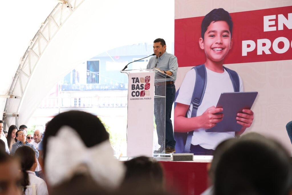 Durante el evento realizado en el parque central del municipio, el mandatario destacó que esta estrategia busca fortalecer la educación pública y reducir la brecha tecnológica entre las y los estudiantes tabasqueños.