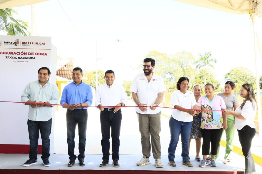 El gobernador de Tabasco, Javier May Rodríguez, entregó la pavimentación con concreto hidráulico de una calle de 459 metros en la ranchería Taxco, municipio de Nacajuca, como resultado de su nueva forma de gobernar basada en el diálogo directo con la ciudadanía. La obra incluye guarniciones, banquetas, red de agua potable y drenaje sanitario, beneficiando de manera directa a las familias de la comunidad, así como a niñas y niños que asisten a un preescolar ubicado sobre esta vialidad.