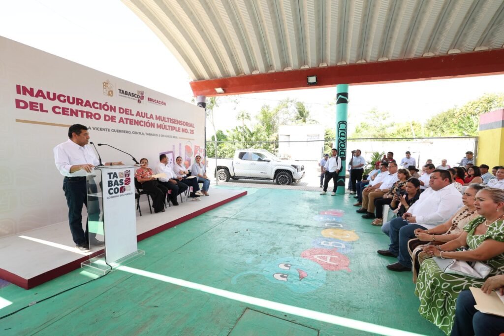 El gobernador Javier May Rodríguez inauguró un aula multisensorial en el Centro de Atención Múltiple (CAM) número 25 de Villa Vicente Guerrero, en el municipio de Centla, como parte de las acciones para fortalecer la educación inclusiva en el estado. Con esta entrega, suman cinco espacios de este tipo en Tabasco y la meta del Gobierno estatal es instalar uno en cada uno de los 27 CAM que existen en la entidad.
