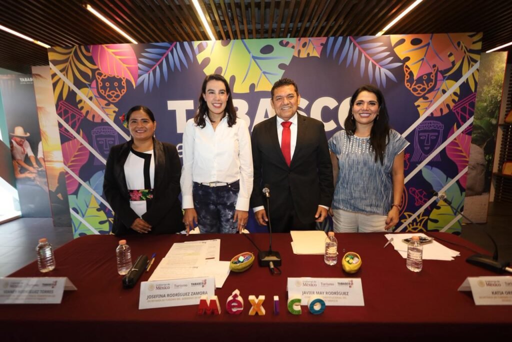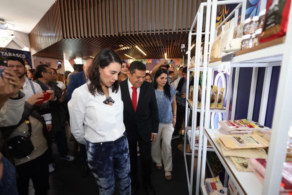 El gobernador Javier May Rodríguez inauguró la exposición “Tabasco en Punto México” en Polanco, CDMX, junto a la secretaria de Turismo federal, Josefina Rodríguez. Del 3 al 30 de octubre, el público podrá conocer más de 7 mil artículos bajo el sello Origen Tabasco, elaborados por 50 emprendedores y 31 artesanos. Con talleres, catas y muestras gastronómicas, se exhibe la riqueza cultural, natural y humana del estado. May Rodríguez afirmó que Tabasco abre sus puertas al mundo para mostrar su esplendor. La exposición refleja la nueva política turística del Gobierno del Pueblo: identidad, desarrollo y orgullo tabasqueño.