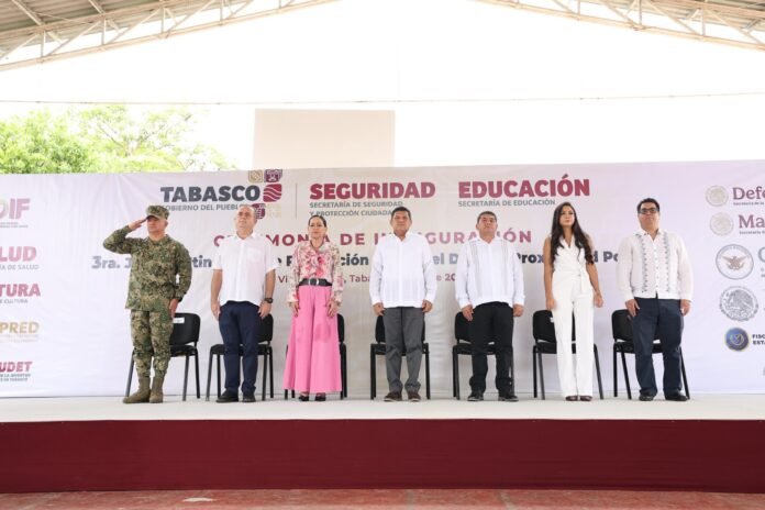 El gobernador Javier May Rodríguez inauguró la 3ra Jornada Itinerante de Prevención Social del Delito y Proximidad Policial en el CBTIS 163 de Villahermosa, reafirmando que la seguridad se construye con cercanía, educación y comunidad. El evento busca fortalecer los factores de protección en los entornos escolares, prevenir la violencia y fomentar la cultura de paz entre la juventud. A través de mesas de diálogo, las y los estudiantes expresan inquietudes y propuestas. Las jornadas han recorrido 19 escuelas de 10 municipios, beneficiando a más de 3,700 jóvenes. Autoridades educativas, judiciales y de seguridad respaldaron esta iniciativa que impulsa la cohesión social y la confianza institucional.