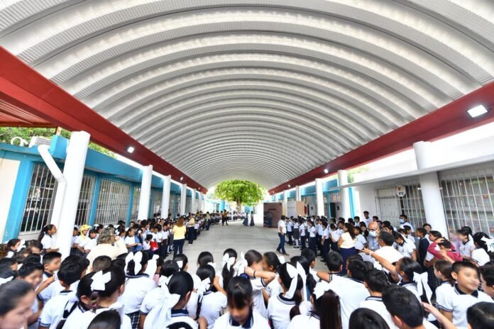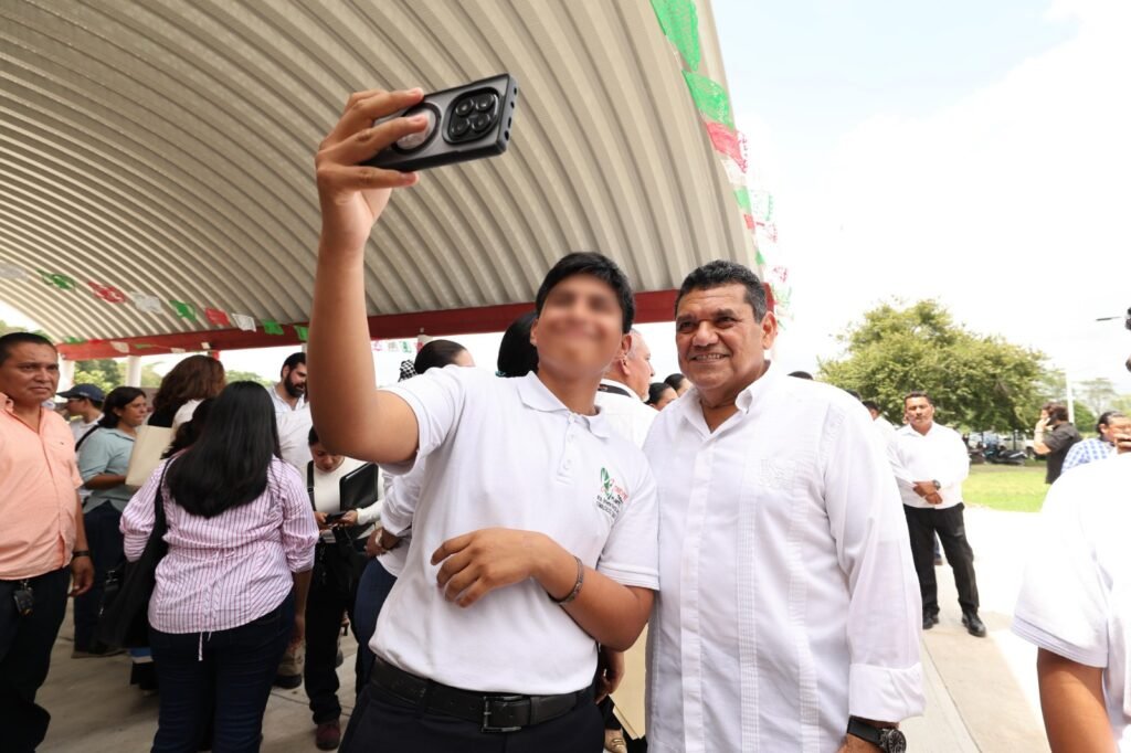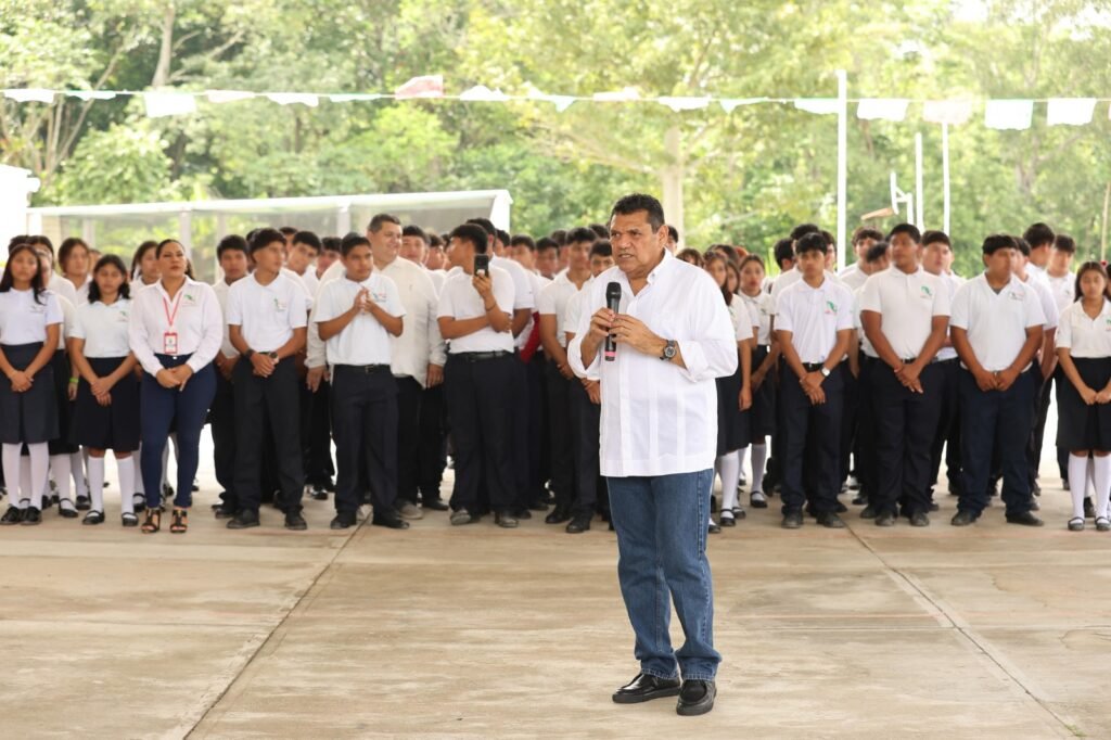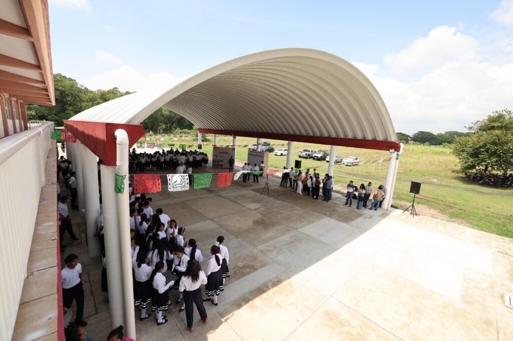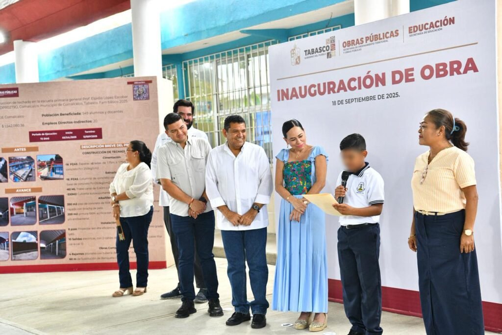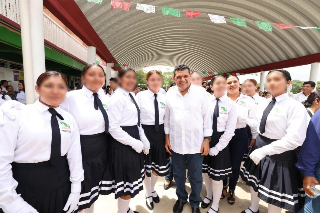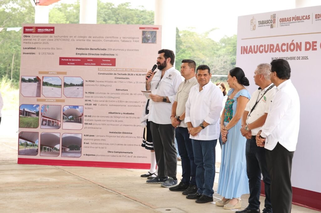 El gobernador Javier May Rodríguez entregó dos techumbres escolares en Comalcalco, con una inversión superior a 3 millones de pesos. Las obras benefician al Cecyte No. 21 y a la primaria “Profr. Elpidio López Escobar”, protegiendo a más de 800 alumnos y docentes de las inclemencias del tiempo. En un ambiente de alegría, el mandatario reiteró que la mejor inversión es la educación, respaldada con becas universales en todos los niveles gracias al apoyo de la presidenta Claudia Sheinbaum. Destacó que estas acciones garantizan cobertura total, fomentan la permanencia escolar y construyen espacios dignos y seguros para las nuevas generaciones.