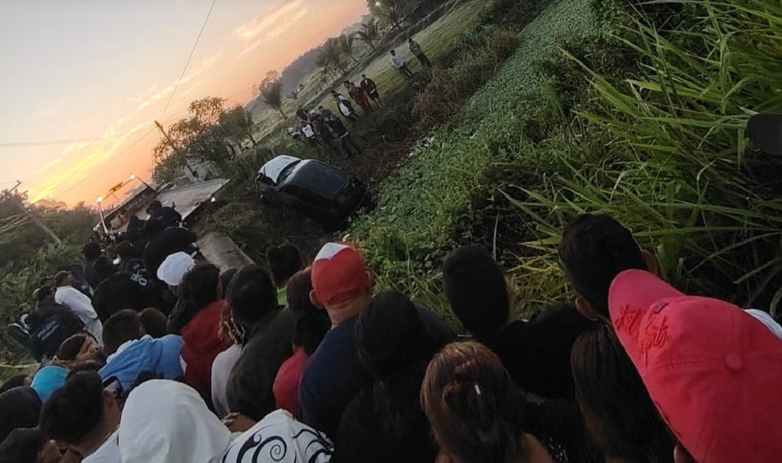 Un trágico accidente vial dejó como saldo tres personas muertas en el municipio de Nacajuca, Tabasco, luego de que un automóvil cayera desde un puente hacia un dren empantanado en el ejido Banderas. Los hechos se registraron durante la madrugada, antes del amanecer, cuando el vehículo, un Chevy color negro, se precipitó con sus tripulantes en el interior.