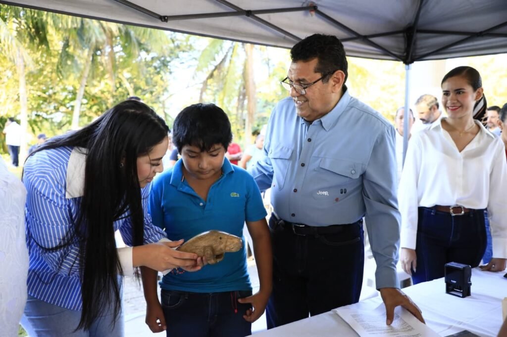 Mario, un niño originario de la ranchería San José, en el municipio de Jonuta, regaló al gobernador Javier May Rodríguez su primera escultura en madera como muestra de agradecimiento por el programa Pescando Vida, el cual benefició directamente a su familia. Desde que sus padres se incorporaron al programa, la economía del hogar mejoró y el ambiente familiar se transformó, llenándose de optimismo y estabilidad.